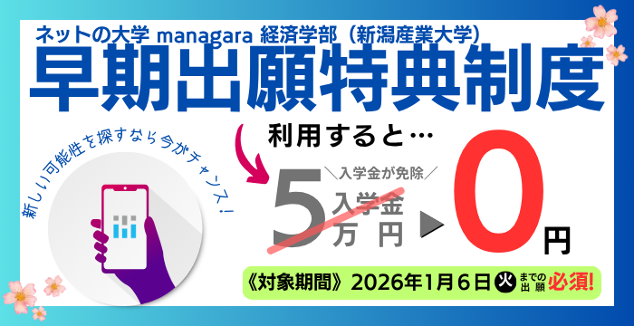 ネットの大学 managara 経済学部(新潟産業大学)は高等教育の修学支援新制度の対象です。