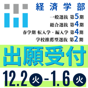 【お知らせ】経済学部:2026年度4月新入学[一般選抜第3期][総合選抜第2期]/[2026年度春学期転入学・編入学(2年次・3年次)第2期]の出願受付を開始しました